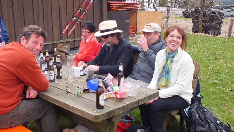 Als alle Teilnehmer wohlbehalten angekommen waren wurde nach kurzer Diskussion, wie der Grill am besten anzuzünden ist, dieser in Betrieb genommen und gegrillt. Um nicht zu dehydrieren wurde natürlich unmittelbar nach der Ankunft schon gesorgt. Eine Kaffeetafel mit selbst gebackenem Kuchen rundete das Ganze am frühen nachmittag ab. Gegen 16:00 traten auch die letzten Teilnehmer den Rückweg an.